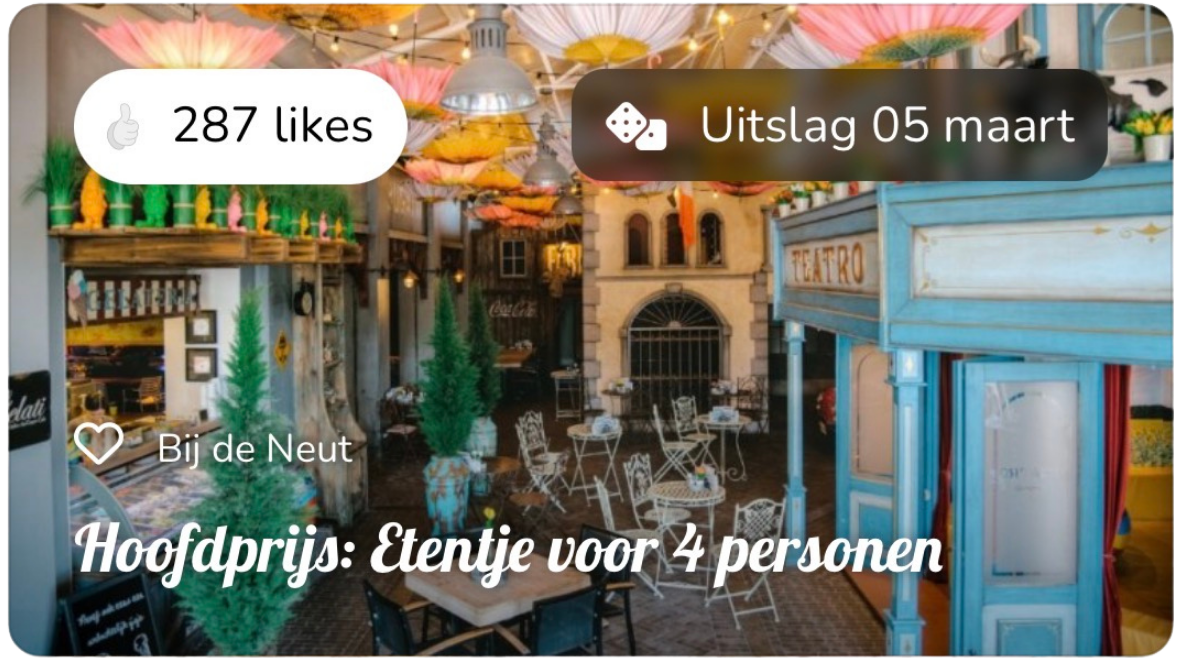 Organiseer je eenvoudig een eigen loterij en zorg voor meer naamsbekendheid. Jij bepaalt de prijs en het aantal winnaars.