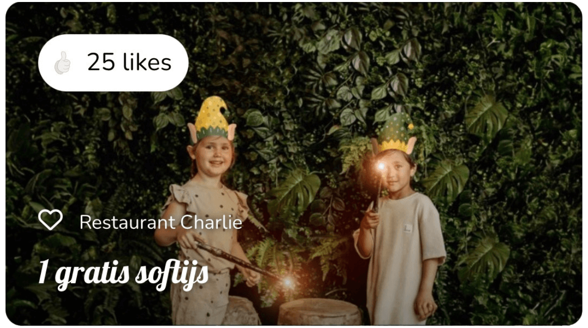 Geef je gasten een voordeel bij een minimale besteding. Ideaal om de gemiddelde besteding te verhogen en herhaalbezoek te stimuleren.